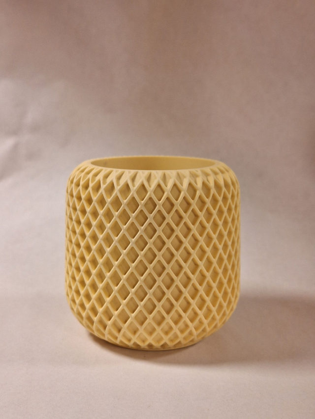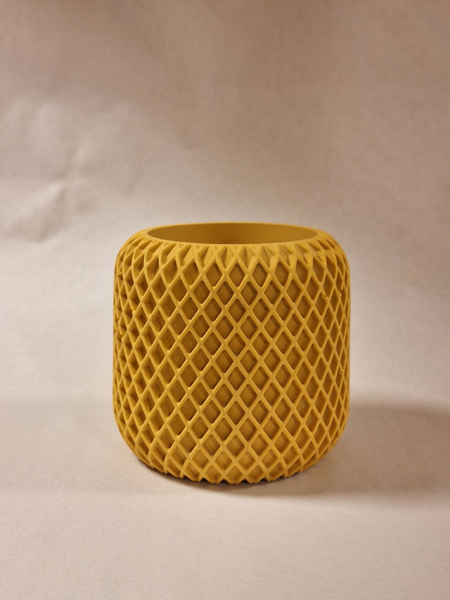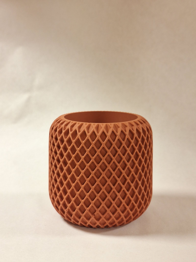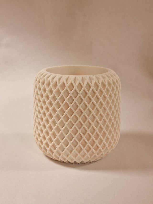 Un petit pot délicatement ciselé de motifs losange, fin et élégant.