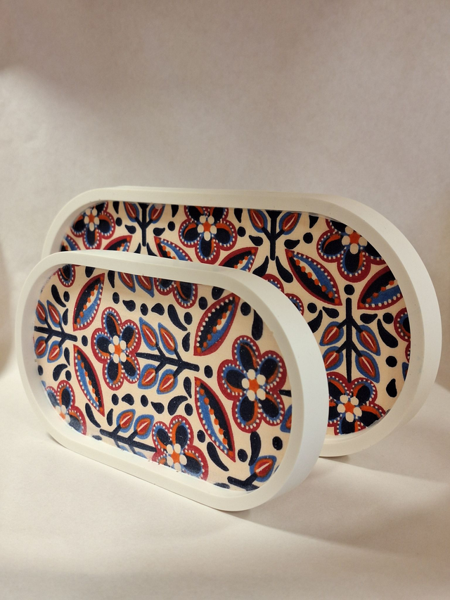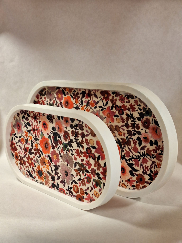 Grand plateau ovale en éco-résine, conçu pour organiser vos objets du quotidien ou accueillir une bougie, mais pensé aussi comme un élément décoratif à part entière.