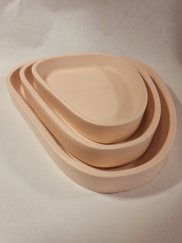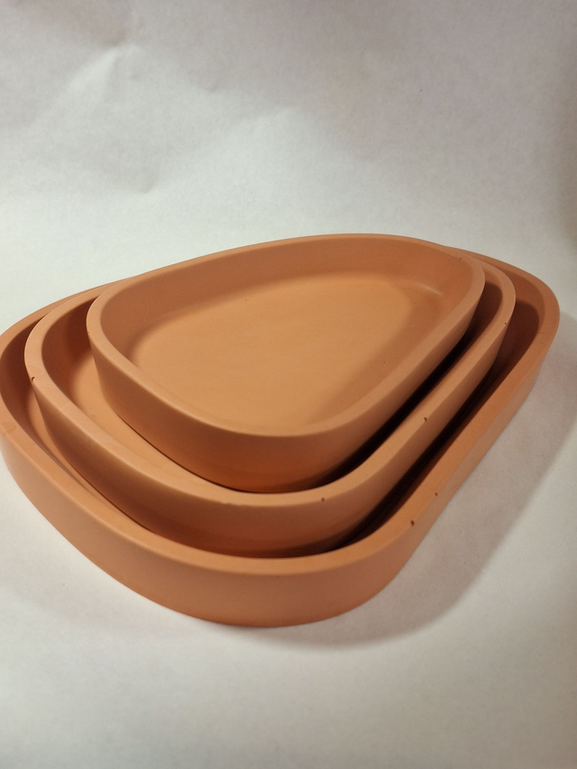 Apportez élégance et fonctionnalité à votre intérieur avec ces plateaux en éco-résine aux contours triangulaires et arrondis, inspirés des galets. Leur ligne souple et leur silhouette asymétrique créent une atmosphère douce et harmonieuse.