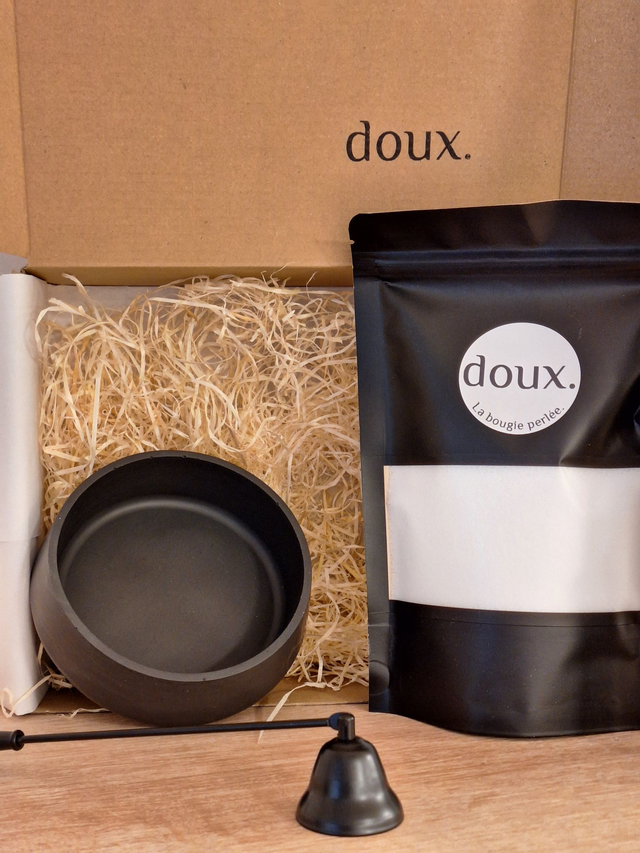 Un joli bol aux lignes simples, de la bougie perlée pour le remplir, un éteignoir pour accompagner le geste. Tout est réuni pour créer un rituel immédiat : verser, allumer, regarder la flamme prendre place.